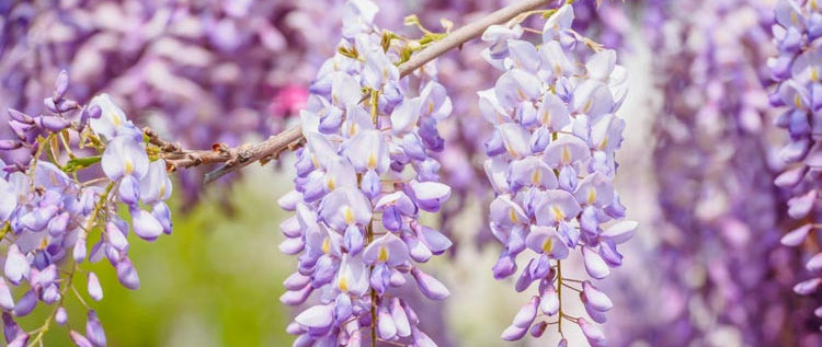 Wisteria has to be my favourite April plant, both for colour and scent. Available in pale and deep purples and a stunning white version.